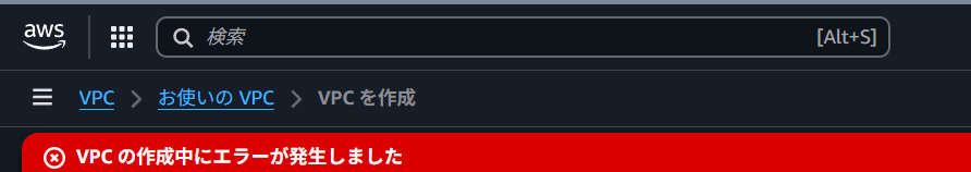 すると、該当のユーザーまたはグループでタグなしで VPC を作成しようとした場合、以下のようにエラーとなり作成がブロックされます。